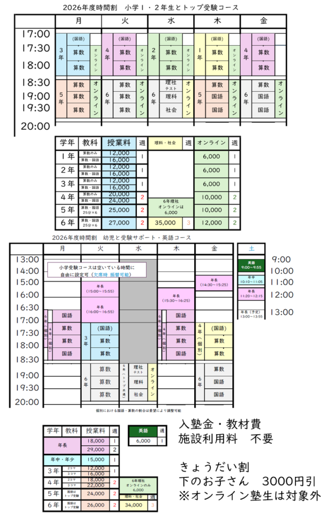 入塾金、教材費、その他諸経費は一切かかりません。